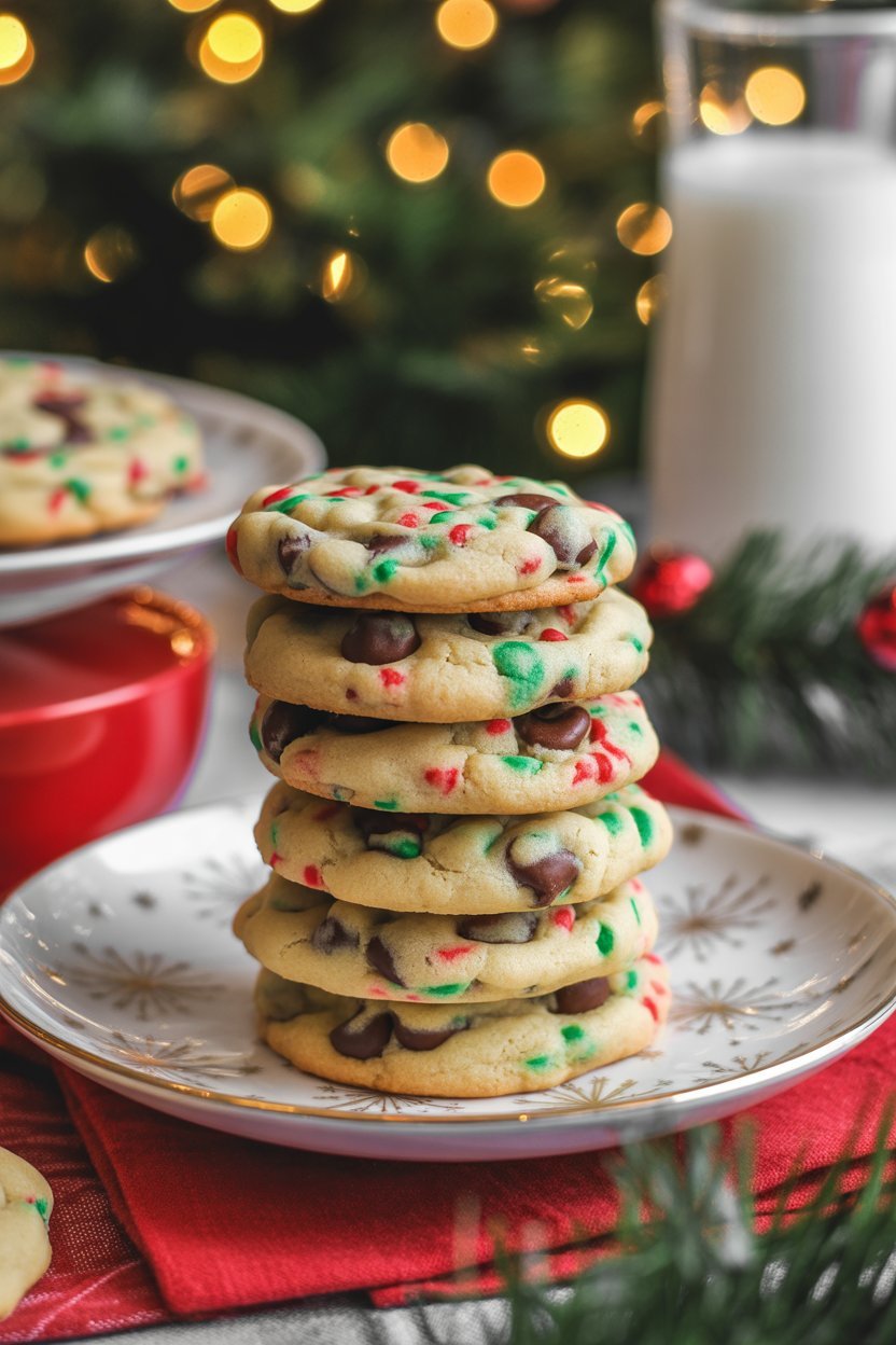 These Christmas chocolate chip cookies are soft, chewy, festive, and full of holiday joy. With gooey chocolate chips and colorful sprinkles, they’re the perfect treat for baking with family, sharing with friends, or enjoying by the fireplace.